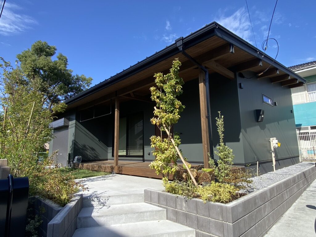 軒の出2,570㎜と大きく張り出した屋根がとってもクールなデザインです。 -
