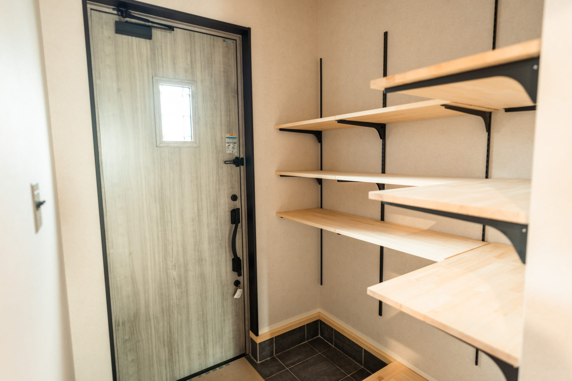 玄関上部はパインの羽目板を配置することで、ワンポイントアクセントとなってとってもかっこいいです!