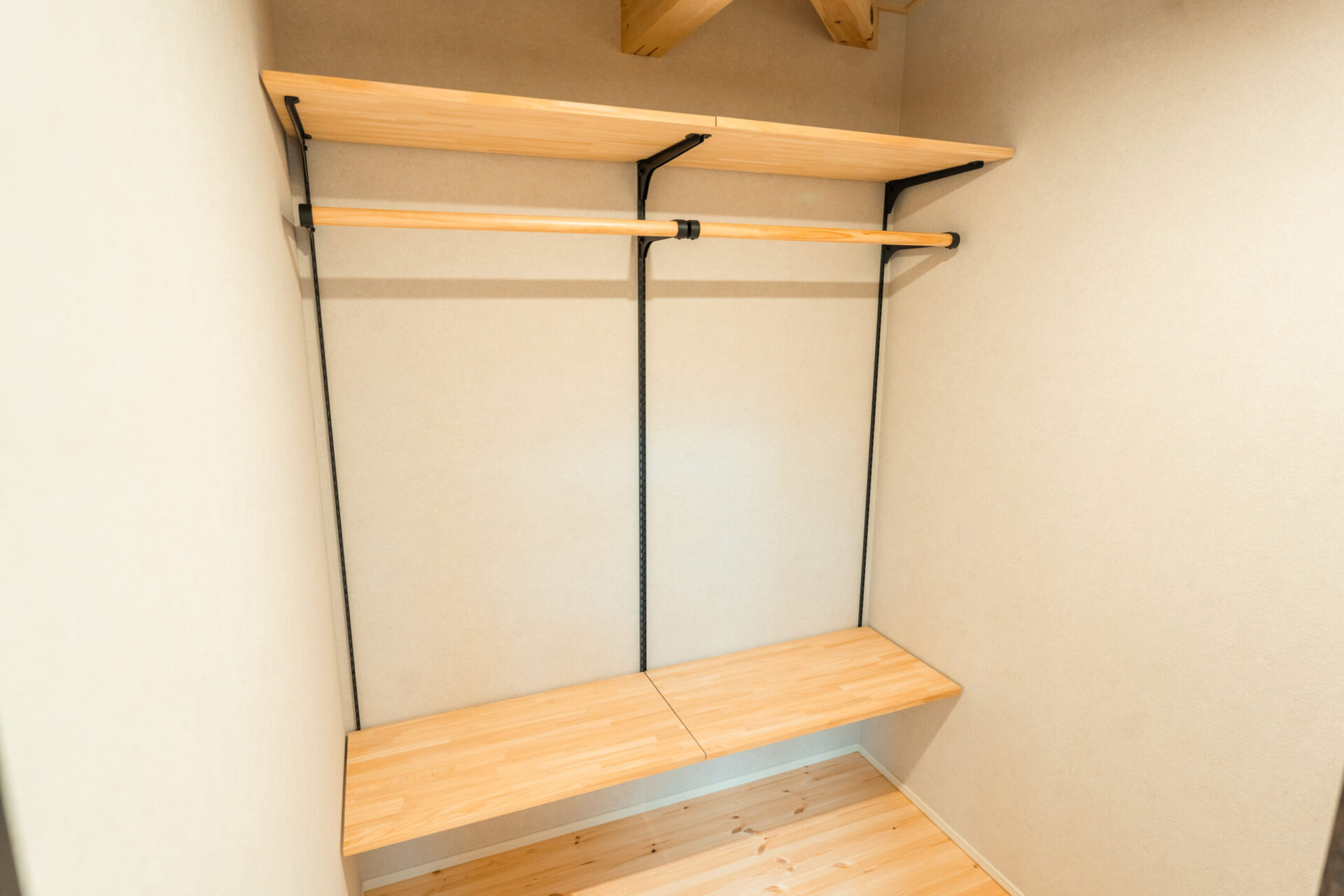 洗面はWOODONEの無垢の木の洗面(オープンタイプ・W1685mm)をご採用頂きました。天板とカウンターはパイン材をチョイスしていただき、パインの床材が標準のBinOの家ととってもマッチします!
